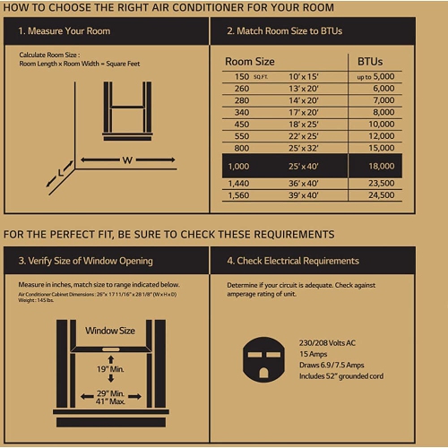 Estimated cooling area: 800 sq. ft. / Room size: 25 ft. x 32 ft.