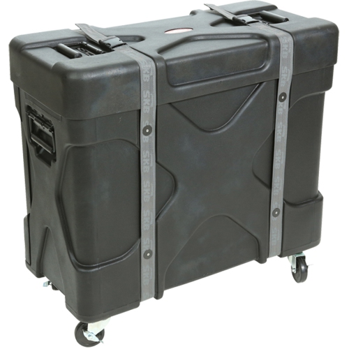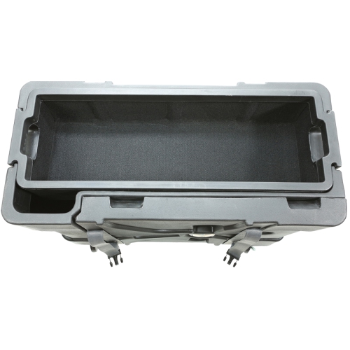 The SKB-TPX2 is a scaled down version of the SKB-TPX1 that is roto molded with the patented X pattern for strength and durability of Linear Low Density Polyethylene. This is a top loading case with a removable lid and lift off hardware tray, Sure Grip handles with a 90 degree stop are designed for easy lifting and transport, 4 casters with brakes and a sturdy, high-tension slide release buckle and heavy duty web straps.