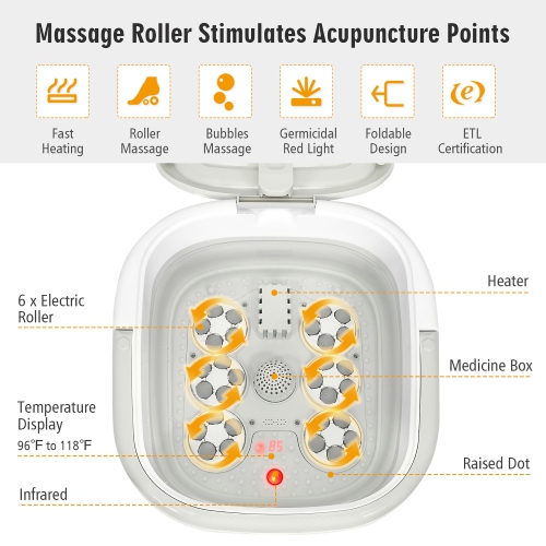 Bubble massage stimulates the acupuncture points of the feet for gentle massage