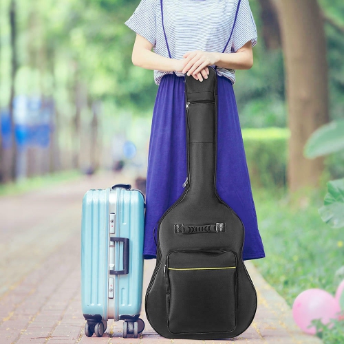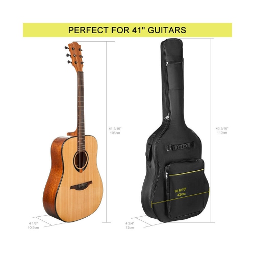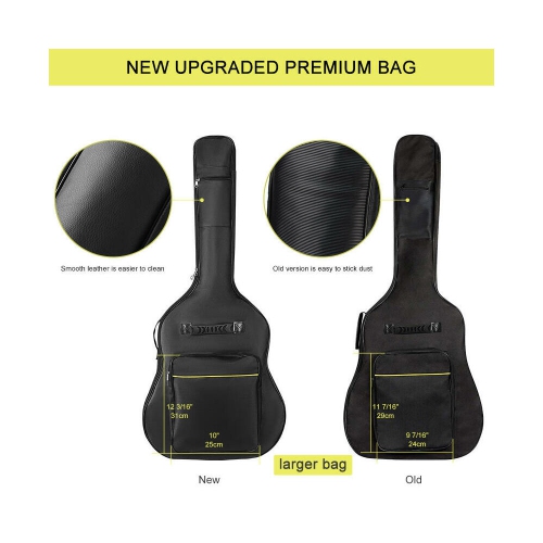 【Large Capacity: 】 Our gig bag features two exterior pouches, one on the front body and one on the neck, so you can easily carry sheet music, documents, music books, and accessories like pedals, adapters, cables, and tuners. Compatible with 39/40/41 inch acoustic & classical guitars.