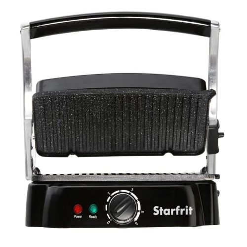 Create endless variations of mouth-watering and perfectly grilled panini sandwiches with the Starfrit The Rock panini grill. The panini grill is designed for versatile cooking. Open the grill 180-degrees to use it as a flat grill to cook your favorite meat and vegetables to perfection. The integrated spout facilitates the draining of excess grease. This is your practical solution for your busy & healthy lifestyle. The removable extra-thick plates are treated with a patented Rock.Tec surface treatment to provide optimal heat distribution for even cooking and superior food release that is three times better than traditional non-stick plates. Any residue left on the grill plates could be wiped off with eases or simply remove them and put them in the dishwasher for convenient washing. Patented Rock non-stick technology