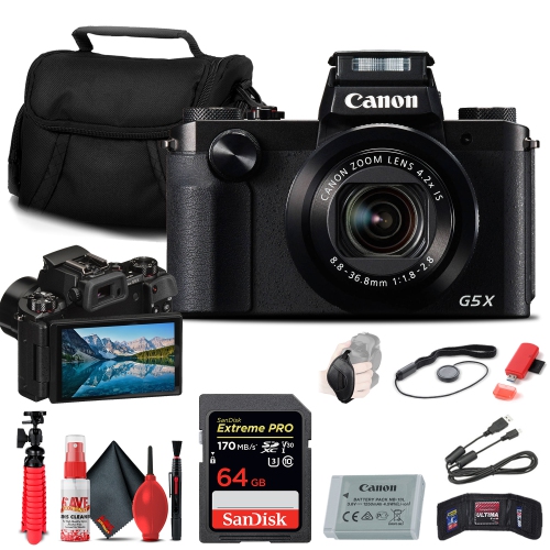 An advanced compact camera characterized by a large image sensor and fast zoom lens, the PowerShot G5 X from Canon pairs a 20.2MP 1" High-Sensitivity CMOS sensor and DIGIC 6 image processor to form the Canon HS SYSTEM for enhanced low-light capabilities, fast performance and Full HD 1080p/60 video recording. Matching the imaging versatility is the 4.2x optical zoom lens, which provides a 24-100mm equivalent focal length range, and features a bright f/1.8-2.8 maximum aperture for depth of field control and working in difficult lighting conditions. Both a high-resolution 2.36m-dot electronic viewfinder and 3.0" 1.04m-dot multi-angle touchscreen LCD are available for monitoring and image review, and built-in Wi-Fi with NFC allows you to wirelessly share imagery with a smartphone, tablet, or Connect Station CS100. Revolving around the sophisticated sensor and processor combination, the G5 X sports both apt imaging capabilities as well as a wealth of functional assets for shooting control and sharing.