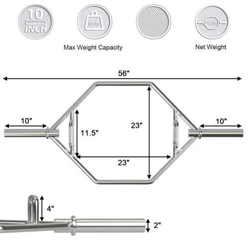 If you're in the market for a fitness equipment that is suitable for many different types of fitness activities, like power lifting, push ups and presses, then this is for you. Made of heavy-duty steel with chrome finishing, our Olympic hex bar is rust and wear resistant. You are free to add weight plates to the loadable sleeve, as long as the thickness and the weight of plates does not exceed the limit of the bar. And the whole product has the maximum bearing capacity of 800 lbs. 2 snap springs help you fix and lock the weight plates tightly. 2 different grip positions, both are knurled to increase friction, meet your different fitness needs. It is worth mentioning that the grip can be folded.