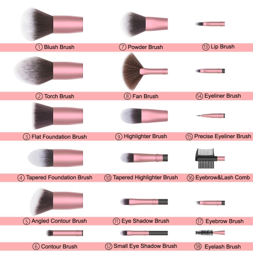 PROFESSIONAL MAKE UP BRUSH SET: 7 pcs big makeup brushes and 11 pcs precise make up Brushes for Eye Shadow, Crease Shadow, Concealer, Blush, Contour, Foundation, Powder, Highlighter, Eyebrow, Lash, Blending, Lip Lining and more, Everything you need for a natural look makeup application is in one set.