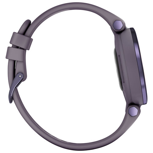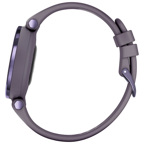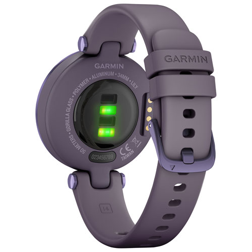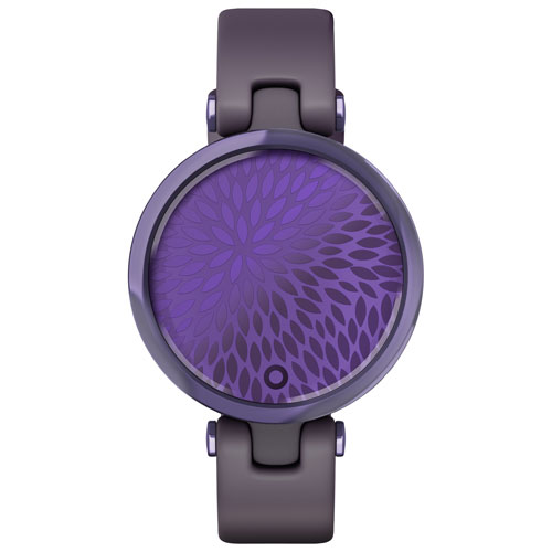 Touchscreen monochrome display with a light-up, patterned lens lets you view your stats with a tap or a flick of your wrist