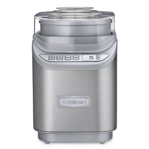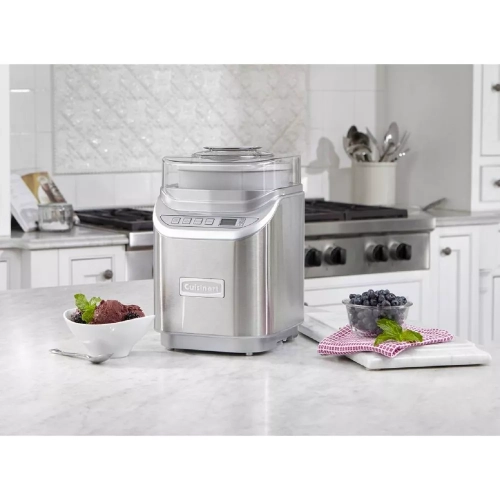 What could be more fun than the Cuisinart Cool Creations™ Ice Cream, Sorbet, and Gelato Maker - it's like having an ice cream shop right in your kitchen! Make up to two quarts of frozen yogurt, ice cream, gelato and sorbet in minutes! Just gather and chill the ingredients for your recipe, choose one of three pre-programmed settings - ice cream, gelato, or sorbet - place the mixing arm in the double-insulated freezer bowl, put on the easy-lock lid, and press Start. Pour the prepared ingredients - and add mix-ins later if you like - through the lid's removable measuring cup/cap. Pre-programmed settings run at specific speeds and are timed for perfect results. The digital display lets you adjust the time to suit your recipe, and the auto-shutoff feature knows when your frozen treat is done. The innovative paddle design delivers perfect, creamy results every time. Enjoy the tastiest frozen treats right at home with the Cuisinart Cool Creations Ice Cream, Sorbet, and Gelato Maker! Brand Overview Savor the Good Life®. Cuisinart’s Mission as a Brand is to develop and market, innovative, high-end kitchen products that enable consumers to quickly and easily provide their family with home cooked foods from a cup of coffee to an extravagant holiday meal.