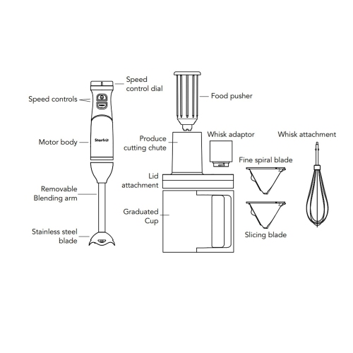 1 L Graduated cup to collect processed food, measuring and mixing (ml, oz and cups)
