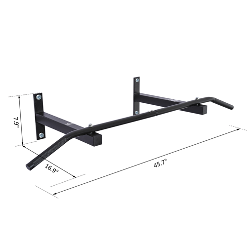 This heavy-duty wall mount chin up/pull up bar from Soozier provides an inexpensive way to tone and build muscles at home, without large training equipment. It can be easily mounted on cement wall or wooden wall with all the hardware included. Features 46" extra-wide pull up bar, it provides maximum range of motion and can develop your back, chest, shoulders, arms and abdominal compound muscles. Constructed of the high-grade steel, it can support up to 220lbs in total, a great addition to home gym!