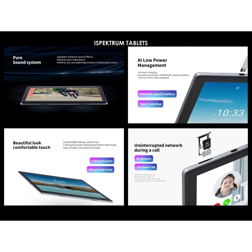 Dual-Sim card supporting 4G/LTE/3G helping you stay connected and entertained in outdoors. Wi-Fi connectivity and 10-hour video playback battery life, iS-Tab A10K is designed for an improved entertainment experience, delivering a better tablet with high-speed network connections to browse, play games, video chat, watch movies & TV series, and more