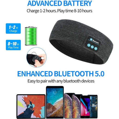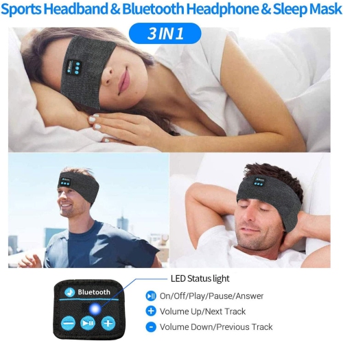♪♫(3 in 1: Sleep Headphones & Sleep Mask & Sports Headband)Our headband is so multi-functional and lightweight that you can use it as sleep headphones, sleep mask and sports headband. Our sleep Headphones feature a headband design with wireless speakers inside, which help to tune out external noises and lull yourself to sleep. ♪♫(Comfortable Sleeping Headband)The Soft Bluetooth headset is very soft\breathable and fast drying,will gives you a good night's sleep or working out. Soft foam-covered headphones are less then ¼ thick, the Bluetooth noise canceling sleep mask headphone a comfortable option regardless of sleeper position or ear shape. ♪♫(High-quality Playback)Quality chip set ensure clear sound and lossless music even the headphones are in the sports headphones. Built-in microphone and volume control buttons which enable users to answer hands-free phone calls and handle previous/next song without having to use your phone.Bluetooth headband bring you peaceful sleep all nigh