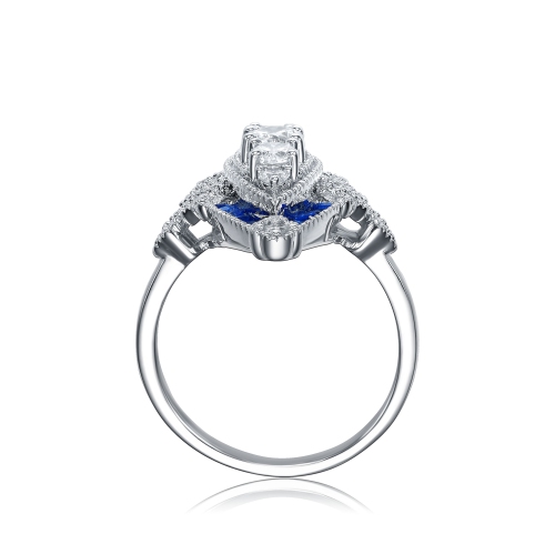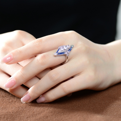 Rozzato Sterling Silver Sapphire Cubic Zirconia ModernRing Size 7