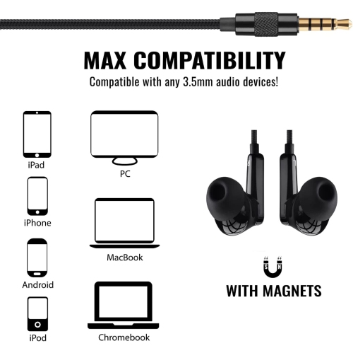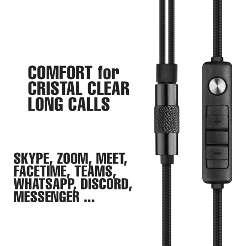 Stylish, comfortable, stable and light - If this is what you are looking for in headset with microphone for work, our gaming headset with mic are perfect for you. Earphones with mic are ideal for all kinds of activities. You can use our office headset with microphone for PC, for example, to work from home or play your favorite video game, or you can also use our earphones with microphone to listen to music or make calls while traveling, playing sports or walking. Compatibility - The universal gaming headset with microphone and cable 1.3 m long is compatible with most digital devices thanks to its 3.5 mm audio jack, such as mobile phones, PC, MAC, XBOX and PS; gaming earphones also support iPhone and other new generation Smartphones via lightning or micro USB adapter (not included in the package). In Ear Design - This model of in ear headphone with mic is specially made for those who don't want to miss a single note of their favorite song. Thanks to their particular design, the mi