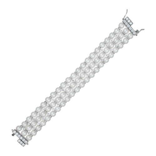 Rozzato Sterling Silver Cubic Zirconia And Three Row Pearl Bracelet