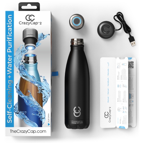 CrazyCap can even sterilize any surface around you: cutlery in a restaurant, shared workspace, or even desk computer. Its that easy! Ditch the harmful disposable plastic bottles and swap for a revolutionary CrazyCap UVC portable water bottle on the go!