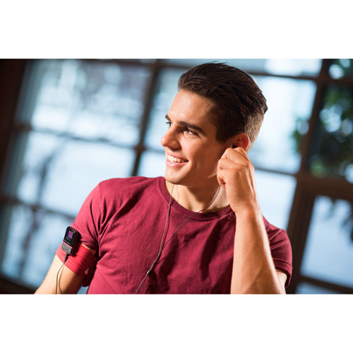Comfortable wired headphones included with MP3 player