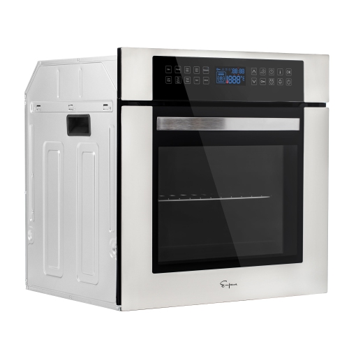 The Electric Oven EMPV-24WOC02 by Empava Delivers Premium Functionality at a Reasonable Price. Empava’s chef series built-in electric oven is packed with all of the features, durability, and modern style of the leading brand ovens at a portion of the price. The Empava Single Wall Convection Oven features 2 layered tempered glass, a sleek and modern stainless-steel look, 10 different cooking settings, and a forced cooling exhaust system. With all of these amazing features and its attractive modern design, the Empava Single Wall Oven will quickly become your favorite and most visually appealing appliances. ELECTRIC CONVECTION OVEN FEATURES: • Product Dimensions: 23.43"L x 20.67"D x 23.43"H - Cut Out Dimensions: 22.24"L x 22.44"D x 23.23"H - Interior Dimension: 18"L x 16"D x 13"H. • Ideal for all spaces, including apartments, businesses, kitchens, homes, and more! • Aluminum casing and easy clean enamel inner shell. • Bright lighting and oversized oven window with 2 layers of tempered glass. • Empava safety technology forced cooling and exhaust system cools and helps you to avoid accidents. • This product is designed and engineered in the USA to confirm the product has the highest of safety standards. • A-class energy saving level highly efficient power consumption. • Child safety lock function. • 10 functions: Rotisserie, Preheat, Broil, True Convection Broil, Roast, Convection Roast, bake, etc.. • Quick and simple installation includes hard electrical wiring, which can be convertible to 3 prong plug. • Superior to gas ovens in heat distribution, temperatures can be set as low as 50 degrees Fahrenheit and as high as 450 degrees Fahrenheit. Quick to heat up, with three sides of heating elements – rear, left, right and also a fan. • 3400 w, 2.3 cu. Ft. – Includes 1 rack that has 5 unique rack positions and also includes a bonus baking tray. • Quiet cooking capabilities.
