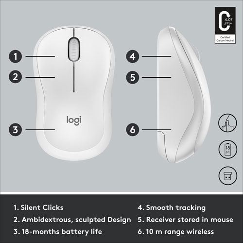 Logitech M220 Silent 1000 DPI Wireless Optical Mouse - Off-White