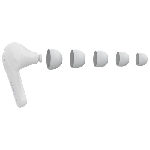 In-ear buds offer a secure and customized fit for little ears with five silicone ear tip sizes included