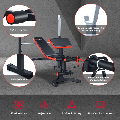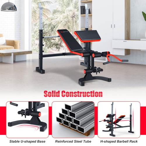 Adjustable backrest, rack height and curl pad allows exercising in multiple positions