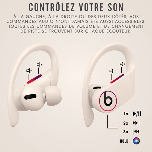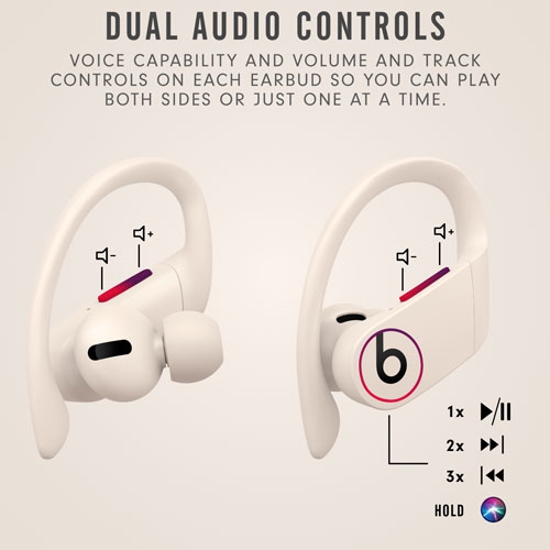 • Comfortable and convenient: In-ear truly wireless headphones are easy to use and free you from the tangle of cables and cords• Connectivity made simple: Class 1 Bluetooth connectivity pairs up with your smartphone, music player, laptop, or other devices without hassle• Superior sound: Dynamic range and noise isolation deliver balanced, powerful sound• Smart controls: Siri assistant built-in, along with the Apple H1 chip make it easy to access smart features without the need to grab your smartphone• Simple, intuitive controls: Volume and track controls are available on each earbud, as well as voice control and automatic play/pause so you're always able to customize your listening experience• Better phone calls: Multiple microphones and a voice accelerometer target your voice and filter away external noise so that your voice calls are clear and easy to understand• Fitness forward: Sweat- and water-resistant design stands up to intense workouts• Comfort without compromise: Adjustable secure-fit hooks can be set to fit your ears so your headphones stay in without any discomfort