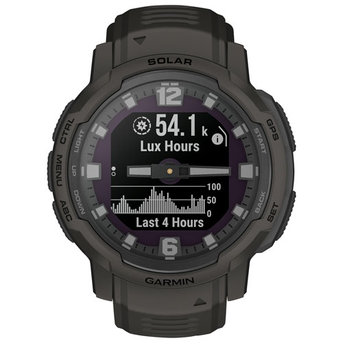 Smartwatch battery life is up to 28 days (or 70 days with solar), and when in watch saver mode is nearly limitless when exposed to 3 hours of sunlight each day