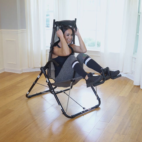 Comfort-Grip handles and custom foot grips ensure proper form while you crunch