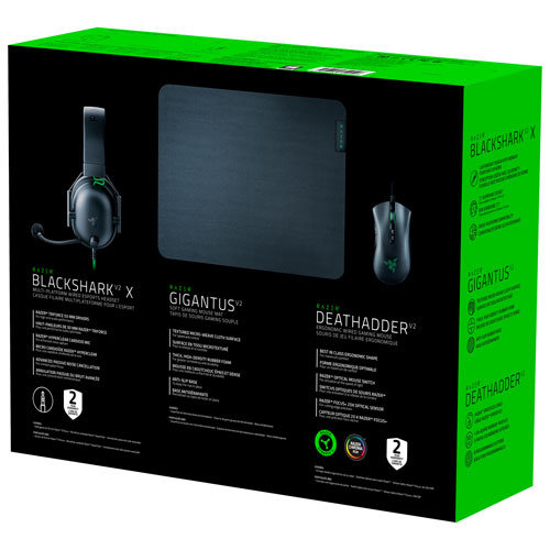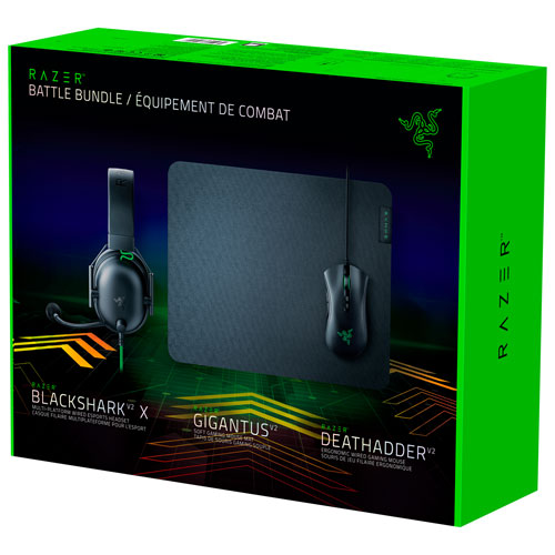 Bundle includes a DeathAdder V2 wired gaming mouse, BlackShark V2 X multi-platform wired esports headset, and a Gigantus V2 medium soft gaming mouse mat