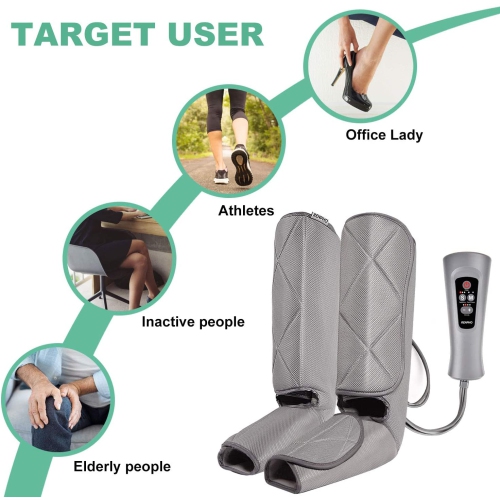This Leg Massager is a new way to relax your calves and feet. Using it for 20 minutes once or twice daily can relax muscle fatigue, and exercise recovery. Multiple massage modes can give you different massage experiences, while the portable design allows you to enjoy it anywhere anytime. Saves time and money!