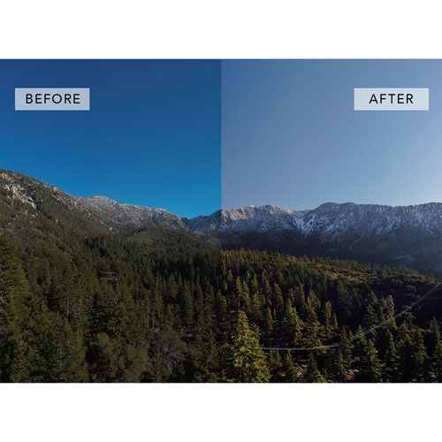 ND0.6/PL filter with polarizer reduces the intensity of light hitting the lens by 2 stops, making it ideal for low-light conditions such as dusk and dawn, as well as cloudy skies