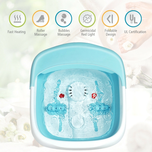 Gymax Foldable Foot Spa Bath Motorized Massager w/ Bubble Heat Red Light Stress Relief