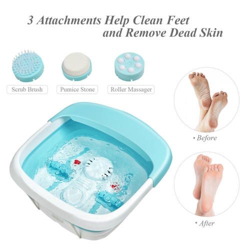 The foldable foot bath massager is suitable for the whole family and can improve your quality of life. There is only one button for easy operation, so you can choose different modes according to your needs. With massage rollers and bubble massage, it can effectively promote blood circulation, relieve the soreness and fatigue of calves and feet, and smooth the meridians. The red light can improve the therapeutic effect as well as reducing swelling, pulsation or redness. And you can freely choose the pumice stone, scrub brush and roller massager to meet different needs. It will provide you with a quiet reading and working environment while massaging your feet. Let your body completely relax with the foot bath massager!