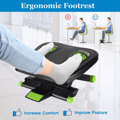 When sitting at a desk, the position of your feet has a major impact on how your back and legs feel. A footrest that elevates the feet and positions your legs correctly is the first step in reducing the stress placed on the feet, legs, and spine from sitting. This Moustache adjustable footrest gives you a comfortable experience when you work all day, giving your feet a massage, reducing stress and promoting blood circulation.