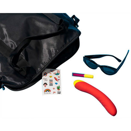 The ROMP Hype comes with ROMP stickers, a USB charging cable, and operating instructions