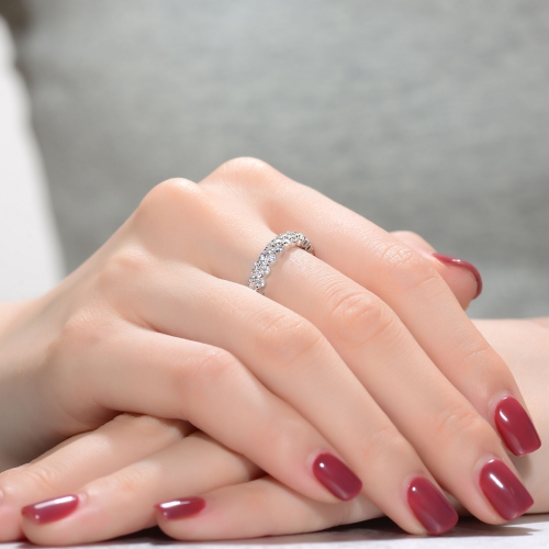 Rozzato Sterling Silver Clear Round Cubic Zirconia Curved Eternity Ring Size 8