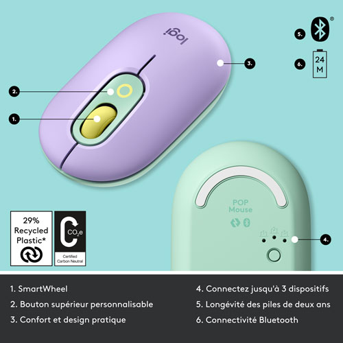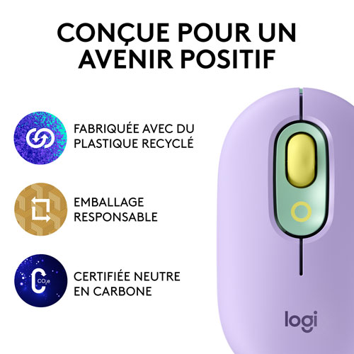 Plastic parts in POP Mouse Daydream include 29% certified post consumer recycled plastic*