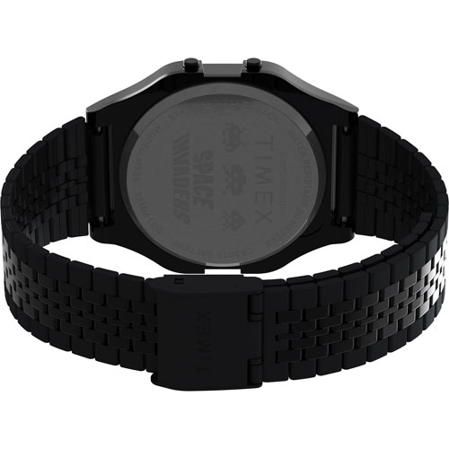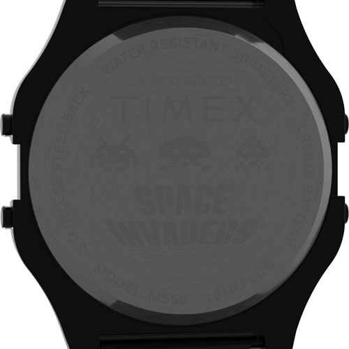34mm black brass case is enhanced with a pixelated alien Invaders design and electronic soundtrack