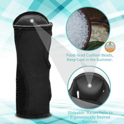 CUSHION BEADS PADDING - There is cushion supported by the cushioning beads at the palm center of wrist brace. The materials are non-toxic and pollution-free. It can change the shape according to different palm to ensure that your hand is in the most relaxed state. Cushioning beads are more breathable and cool than cotton pads.