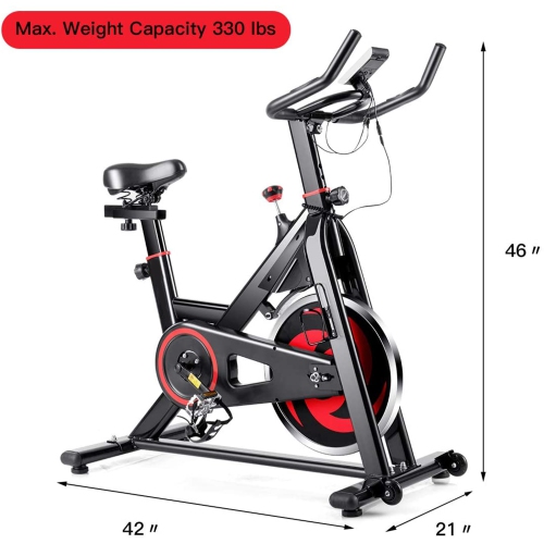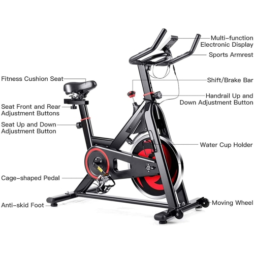 The 30 lbs fly-wheel with adjustable resistance control and belt drive mechanism creates an unbelievably smooth and nearly silent ride, which won't disturb the families or roommates, and is convenient for you to adjust your workout intensity. The adjustable handlebar and seat allow you to adjust the sitting position according to your needs. Equipped with painted iron pipes and aged foot pedals, it is sturdy and safe enough to accompany you for a long time. Last but not least, stable triangular frame and emergency brake knob provide you with security in times of crisis.