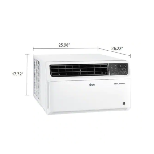 The LG Dual Inverter air conditioners are the best in cooling innovation. This ultra quiet unit operates at 44 dB in sleep mode, almost as quiet as a library. In addition, the DUAL Inverter technology allows the unit to operate efficiently saving you as much as 50% on energy costs. Cool your home from anywhere using LG ThinQ technology to control your air conditioner with your phone or use with Alexa and Hey Google to have control with the sound of your voice. 4 cooling and fan speeds and a 24 hour timer allow you to create a cooling schedule to suit your needs. 4-way air deflection lets the flow of air be directed where it's needed most whether cooling, dehumidifying or just circulating air. If there is a power outage, the auto restart feature will automatically turn your unit back on when power is restored. Other features include an LCD remote control, easy window installation kit, removable (washable) filter and a check filter alert.