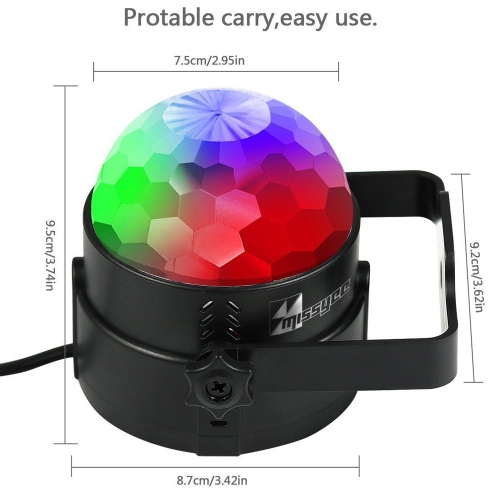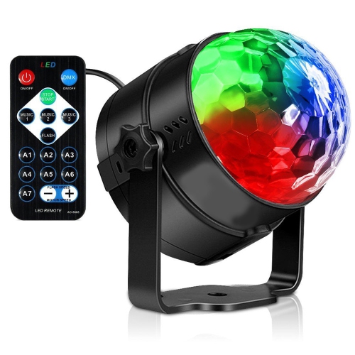 RGB LED Stage Light Ball 3W w/ Sound activated effect Party disco lights can create gorgeous and lively visual effects and atmosphere. Perfect party disco lights for birthday, pool, dance, holiday, wedding, Christmas and more! Very easy to use party disco lights, just plug and play with remote control. - RGB 7 COLORS REMOTE:7 Colors (3 single color and 4 color combinations)disco ball party lights with a remote control to change the color and speed.