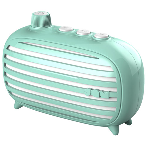 Compact speaker is easy to carry for powerful on-the-go sound and has a stylish, retro look