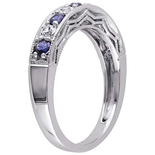 Modern Sterling Silver With Round Blue/White Round Created Sapphire Gemstone Fashion Ring - 6