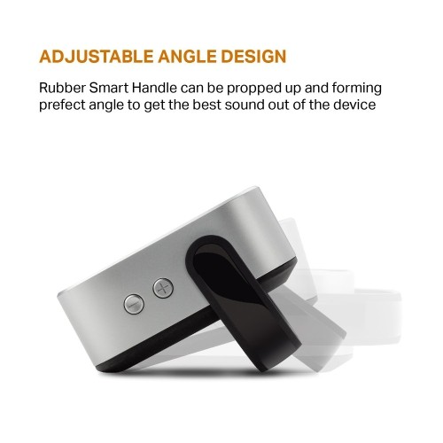 High quality audio performance-spacious with enhanced frequency performance, ideally design for the real sound?Ideal angle for indoor or outdoor music experience-rubber smart handle can be propped up and forming ideal angle to reduce the surface of contact in between the speaker?With larger sound driver delivered the extendable and detailed sound further away?66-Feet bluetooth wireless range control your music from up to 20 meters (66-Feet) away from all your bluetooth-enabled devices?Pocket size-weight only 175 g, dimensions 10.3(L)x9.4(W)x3.7(D) cm