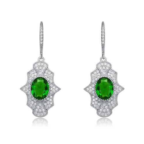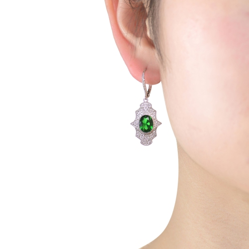 Rozzato Sterling Silver Emerald Cubic Zirconia Embelish Leverback Earrings