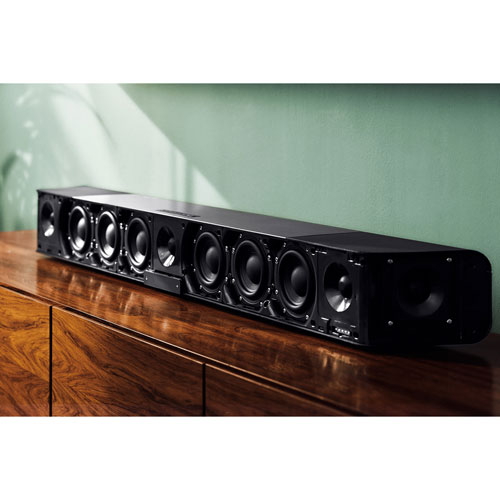 500-watts soundbar with Ambeo 3D technology that creates an immersive experience using 32-bit processing and room calibration to virtually place speakers around the room
