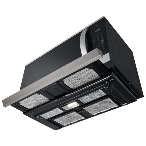 Over-the-range design with a slide-out vent and PrintProof stainless steel combines convenience with sleek style