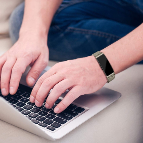 Material: The Inspire strap is made of high quality stainless steel metal, sweat and water resistant material with venting holes. The stainless steel strap is elegant, comfortable, flexible and durable.