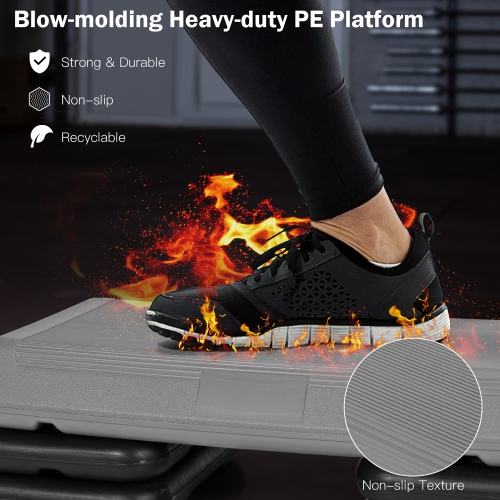 Premium blow-molded PE stepper features great durability and strong hold