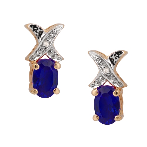 Rozzato Sterling Silver Rose Gold Plated Sapphire Cubic Zirconia Oval Earrings