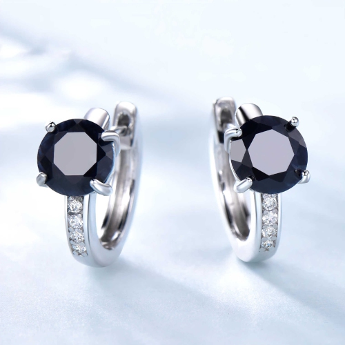 Enjoy sophistication. These stunning huggie earrings feature 0 CTW Blue color AAA clarity round nano sapphires complemented by CTW White color AAAAA clarity round cubic zirconias in 0.925 whiteTotal carat weight is 0.